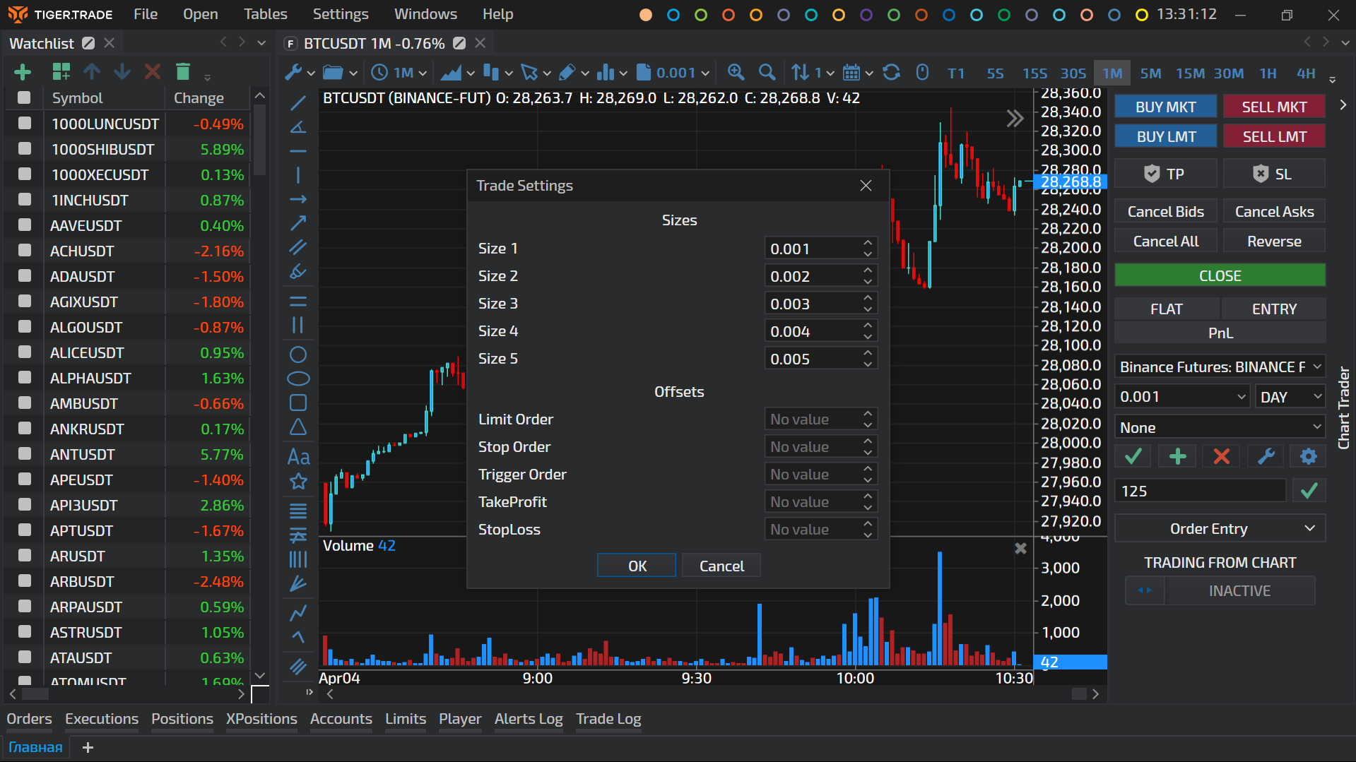 The offsets settings menu can be retrieved by clicking on the ![](https://2207507098-files.gitbook.io/~/files/v0/b/gitbook-x-prod.appspot.com/o/spaces%2FOSB2AVpWygd626dcnm1c%2Fuploads%2F7C6ZhCDuo1EZ6oGGPb1e%2Fimage-2.png?alt=media\&token=bfdd4abe-e132-43e5-8176-5e567832d92c) icon in the Trading Module of either [DOM](https://support.tiger.com/english/windows/dom) or [Chart](https://support.tiger.com/english/windows/chart) window.&#x20;