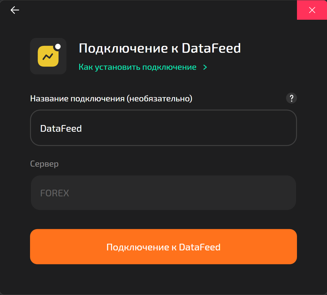 В открывшемся окне нажмите кнопку «+ Новое подключение» и в появившемся списке выберите DataFeed.