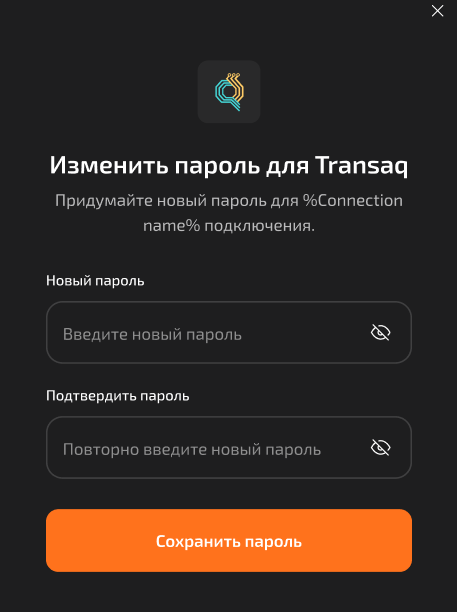 <figure><img src="https://1274720096-files.gitbook.io/~/files/v0/b/gitbook-x-prod.appspot.com/o/spaces%2FhzNfRGfbNL2dtrsyOTEL%2Fuploads%2Fgit-blob-4d3bee5731485dd9e1592018671432f7ff06ef7d%2Fimage.png?alt=media" alt="" width="343"><figcaption><p>Форма изменения пароля Transaq Connector</p></figcaption></figure>