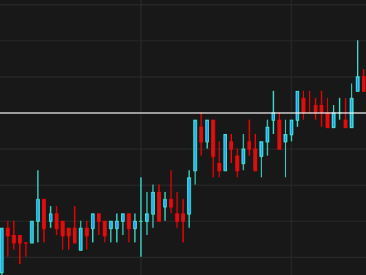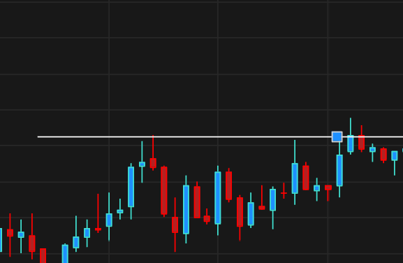Имеет полностью идентичные настройки, как у **Горизонтальной линии**. Единственное отличие, что **Горизонтальный луч** имеет начало в текущем месте на графике, где будет установлен. Удобный графический объект для минимизации информационной нагрузки на левую часть графика.