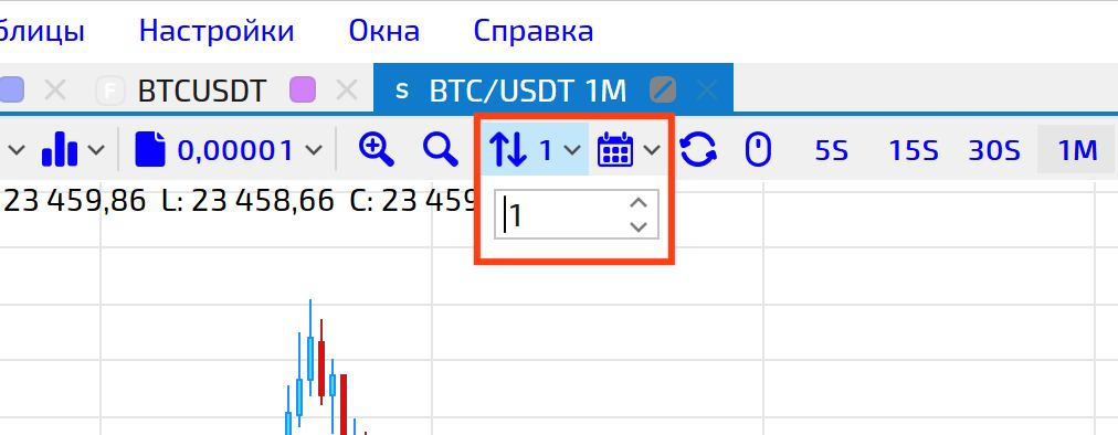 Для удобства анализа кластерных графиков может понадобиться изменить масштаб цены на панели сверху. Это важно, так как ценовые уровни могут сливаться, отображая пустые поля: