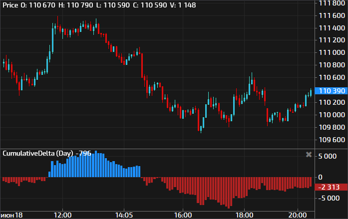 | Цвет при росте   | Выбор цвета для отображения дельты при росте кумулятивной дельты.   |
