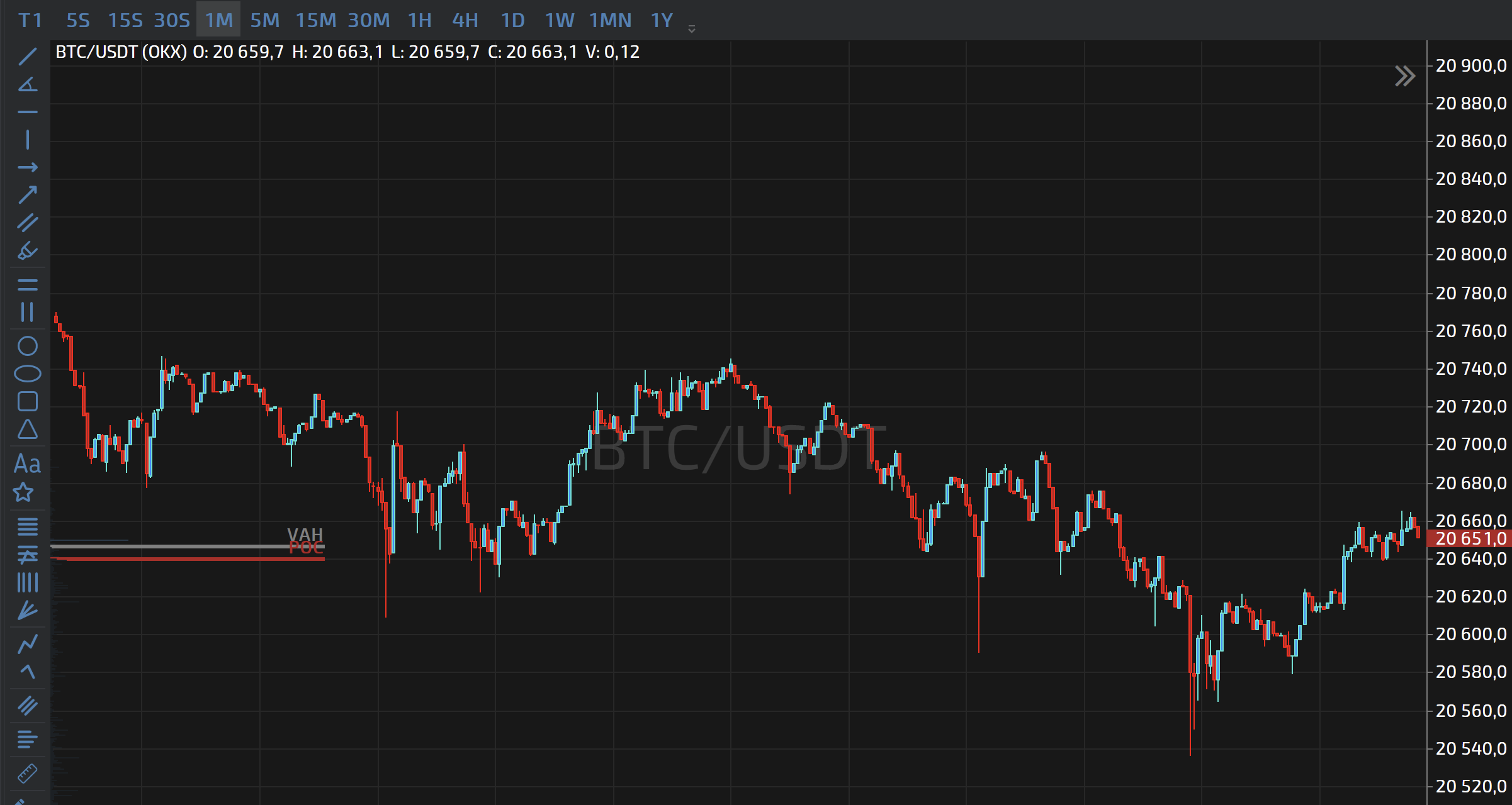 | Отображать POC          | POC - это место, где прошёл максимальный объём. Опция включает отображение в виде красной линии, подписанной РОС.                                                                                          |